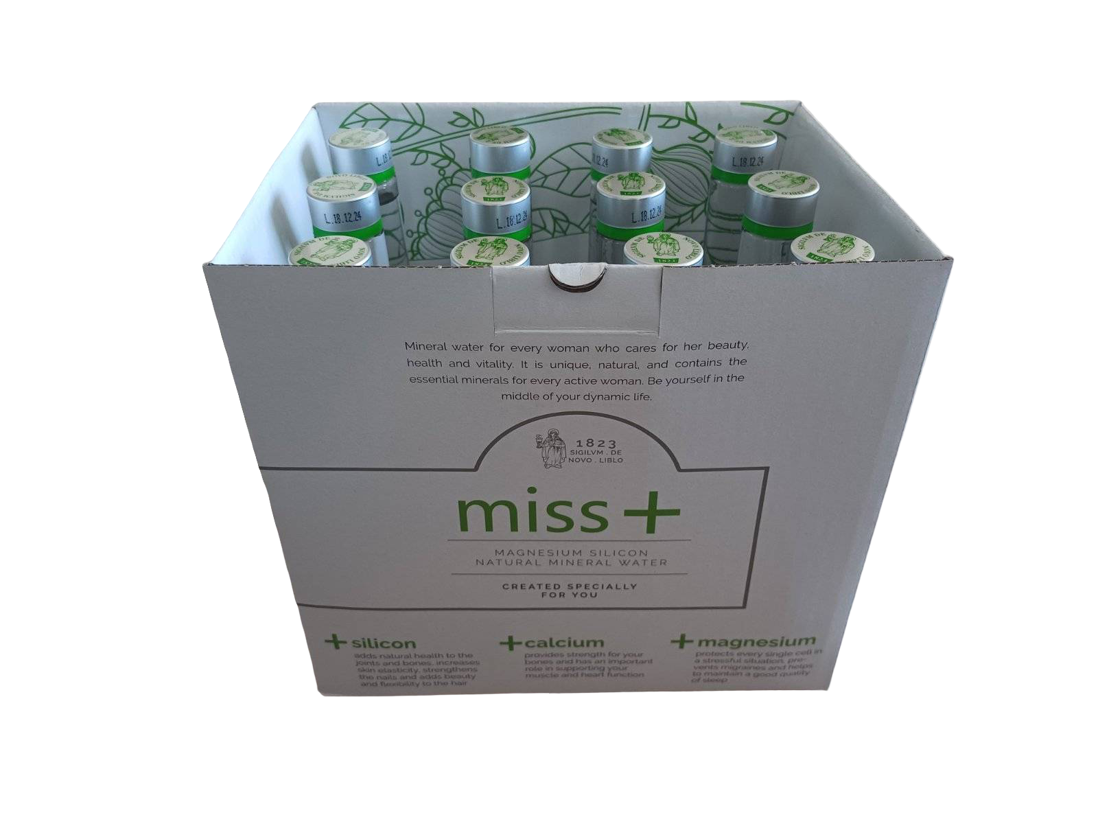 See on loodud spetsiaalselt naistele. See sisaldab suurenenud kogust bikarbonaate, magneesiumi, kaltsiumi ja lahustunud silikaate. See vesi täiendab teie igapäevast magneesiumi, kaltsiumi ja ränivarusid. Magneesium aitab närvisüsteemil ja lihastel korralikult toimida ning tagab õige ainevahetuse energia tootmiseks. Magneesiumi ja räniga mineraalvesi Miss + täiendab teie joogirežiimi ning tagab vajalikud mineraalid. Miss+ on esimene naistele mõeldud mineraalvesi Slovakkiast. Tänu oma ainulaadsele koostisele on see erakordne mineraalvesi, mis pärineb Kõrg-Tatrate allikatest. Lisaks magneesiumile ja kaltsiumile sisaldab see nn „ilumineraali“ – ränidi, mille abil organismis toimub hüaluroonhappe biosüntees. Tulemus – säravamad juuksed, tugevamad küüned ja elastsem nahk.